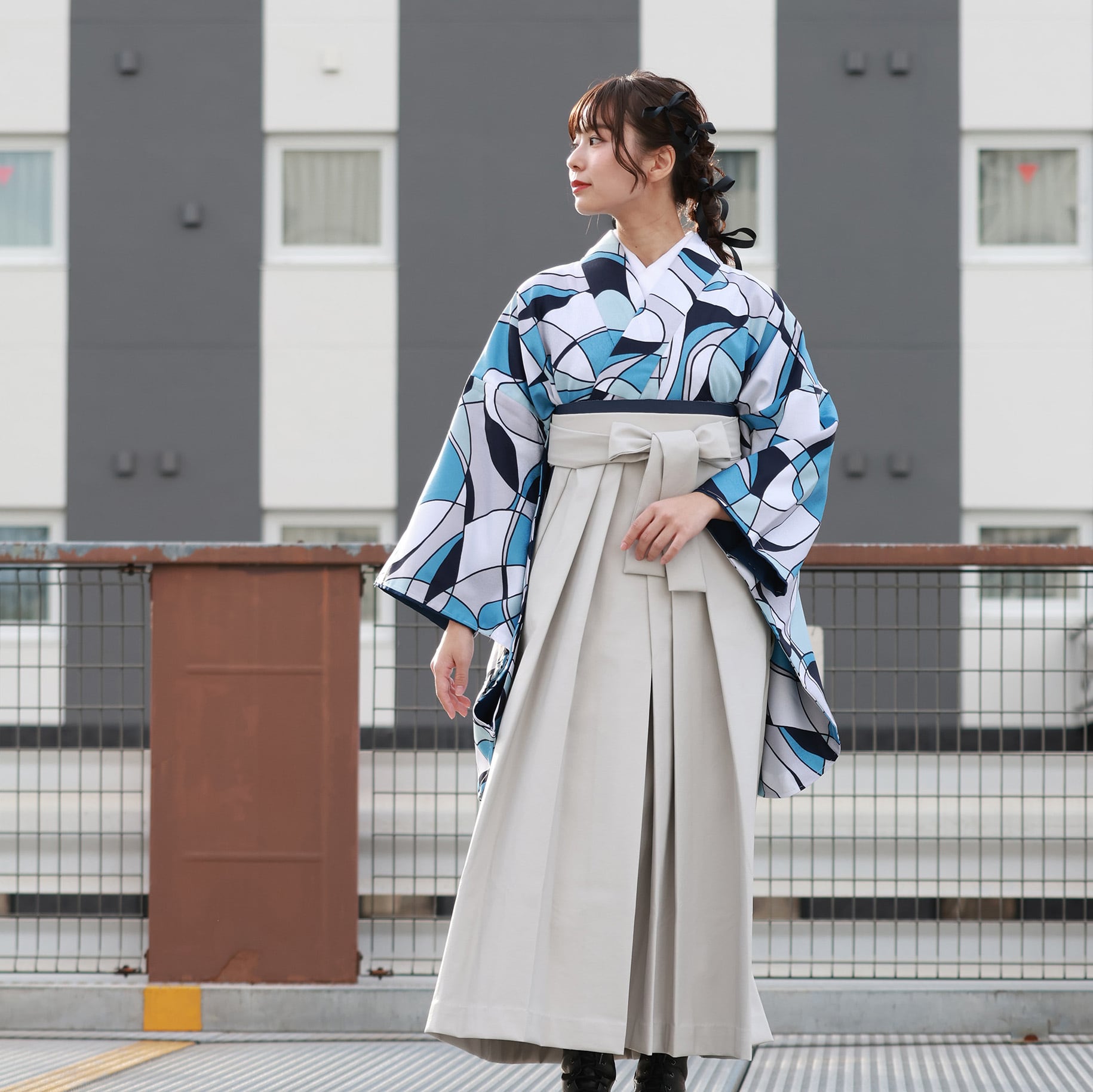 草花や幾何学模様を現代的な色合いで再構築した二尺袖と遊び心のある袴でシンプルでありながら、個性が輝く袴スタイルをご提案いたします。